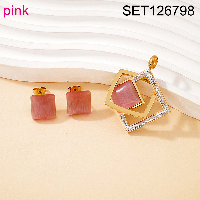Home > Level B Stainless Steel New Trendy Women Jewelry Pink Opal Square Golden SET