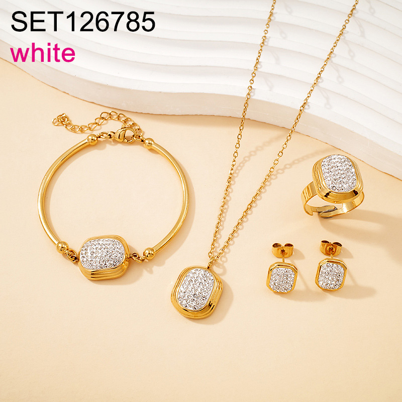 Level B Stainless Steel New Trendy Women Jewelry White Clay Sticky Rhinestone Geometry Golden 4pcs SET