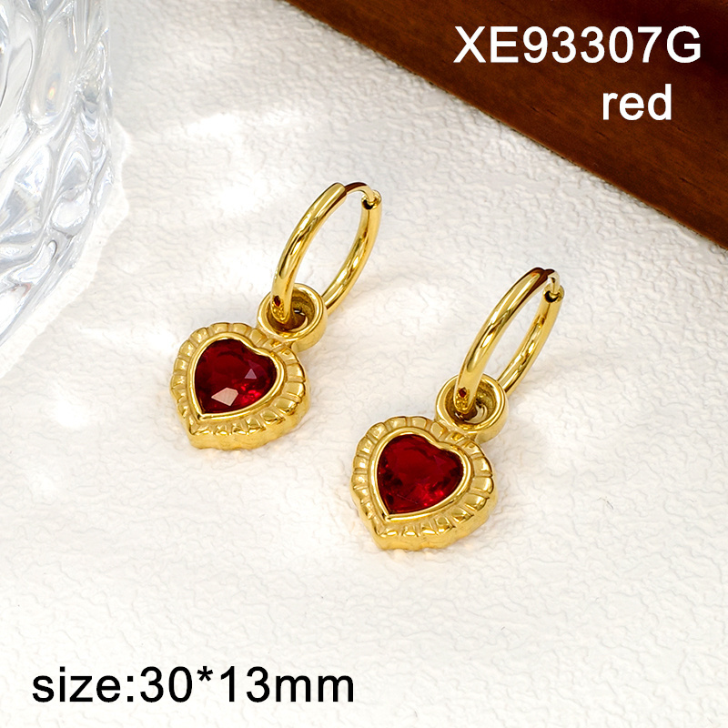 Level A Stainless Steel New Trendy Women Jewelry Red Stone Heart Golden Valentine's Day CZ Earrings
