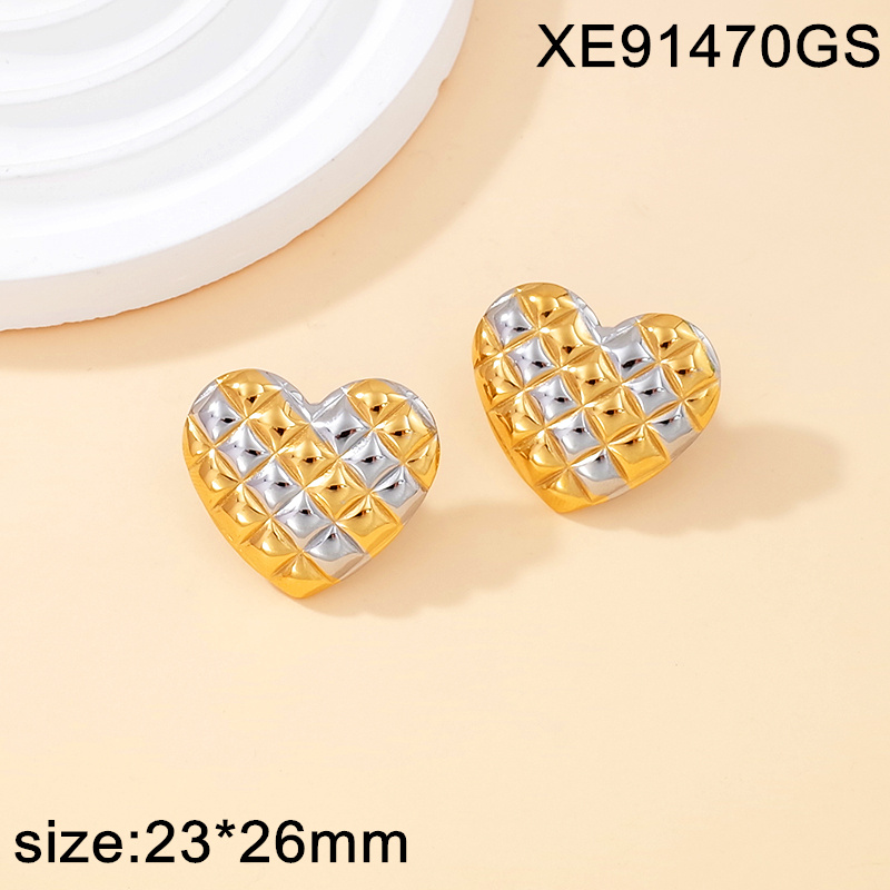 Level A Stainless Steel New Trendy Women Jewelry Heart Two Tone Valentine's Day Earrings