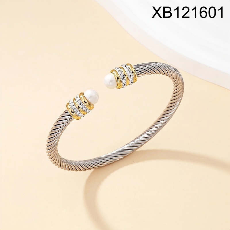 Level B Stainless Steel New Trendy Women Jewelry Pearl Style/Plastic Beads Two Tone Twisted Bangle