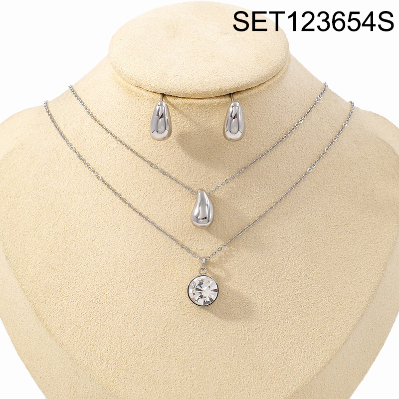 Home > Level A Stainless Steel New Trendy Women Jewelry Two Layers Chain Water Drip Shape Steel color SET