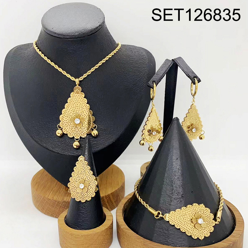 Level B Stainless Steel New Trendy Women Jewelry Water Drip Flower Golden 4pcs SET