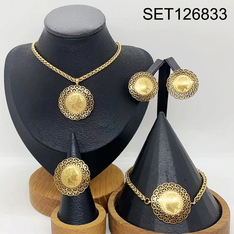 Level B Stainless Steel New Trendy Women Jewelry People Coin Golden 4pcs SET