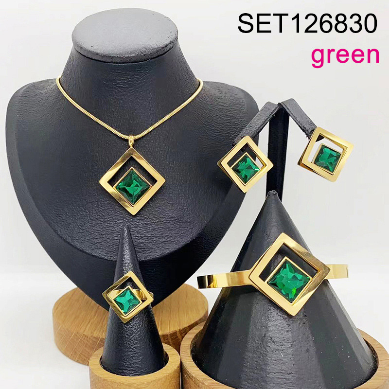 Home > Level B Stainless Steel New Trendy Women Jewelry Green Glass Square Golden 4pcs SET