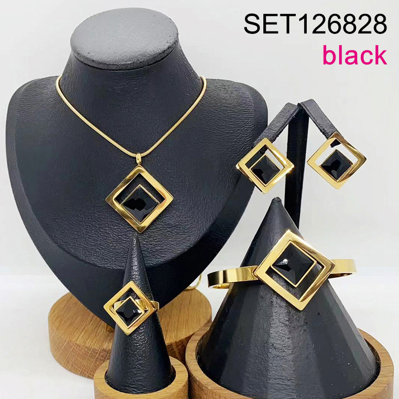 Level B Stainless Steel New Trendy Women Jewelry Black Glass Square Golden 4pcs SET