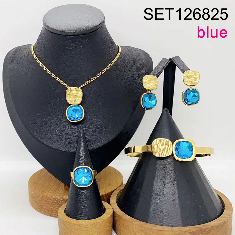 Level B Stainless Steel New Trendy Women Jewelry Blue Glass Square Golden 4pcs SET