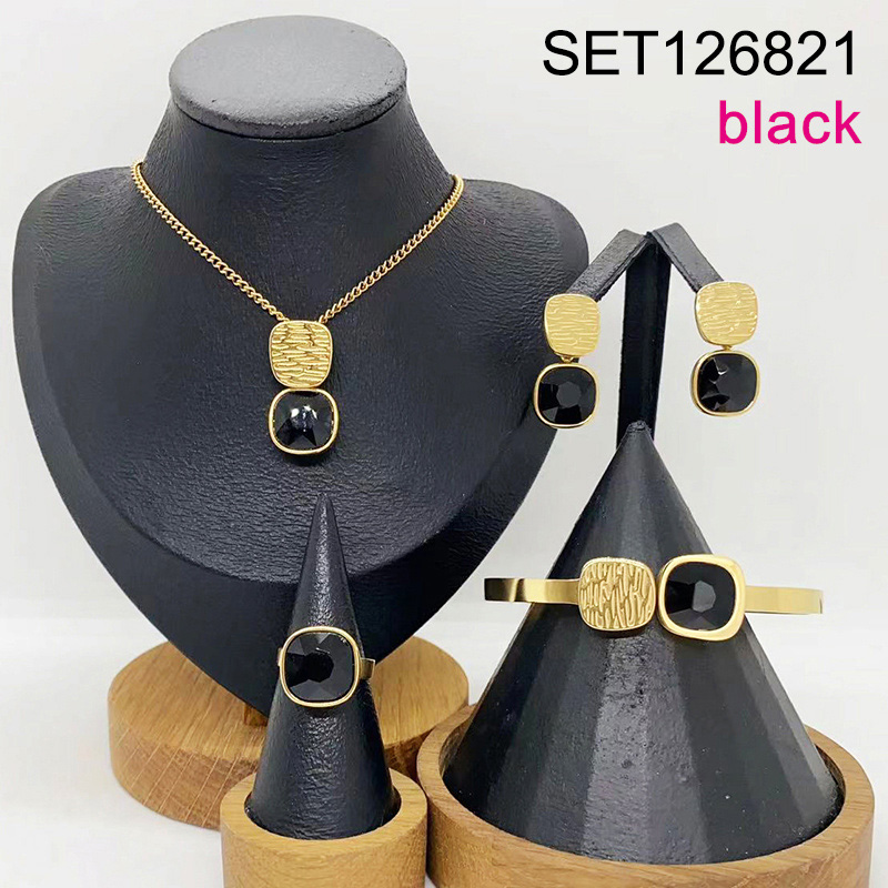 Level B Stainless Steel New Trendy Women Jewelry Black Glass Square Golden 4pcs SET