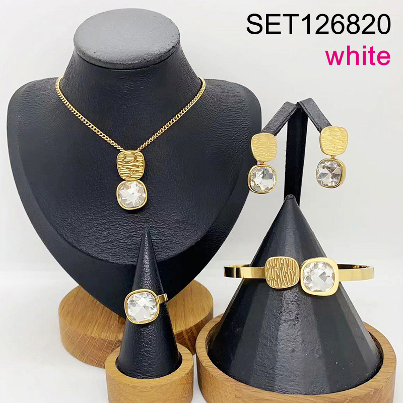 Level B Stainless Steel New Trendy Women Jewelry White Glass Square Golden 4pcs SET