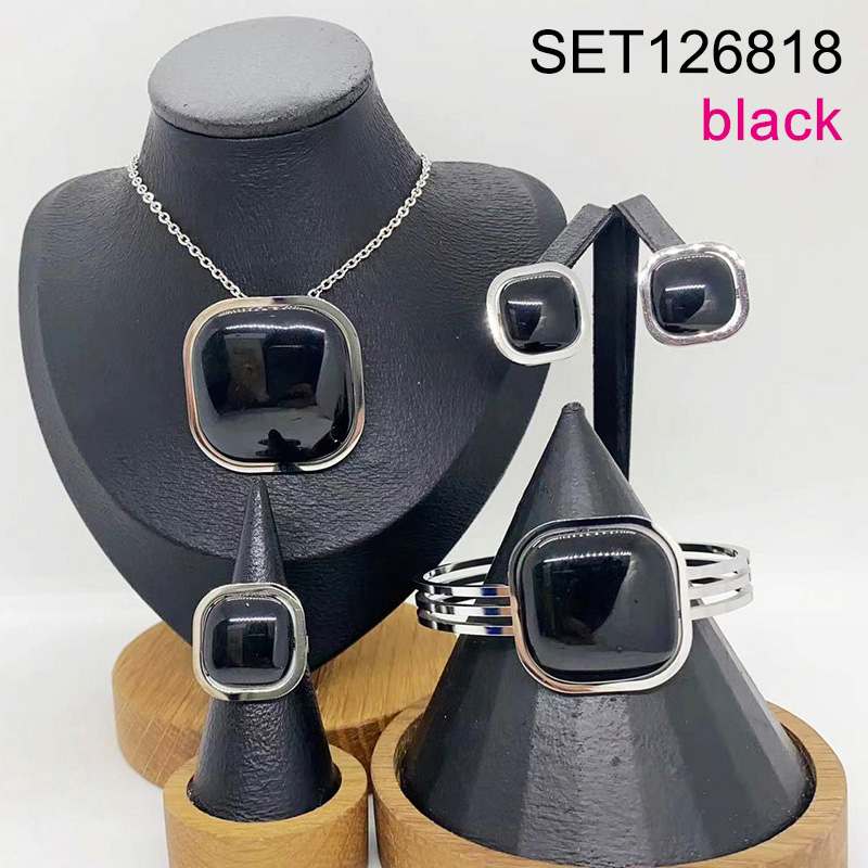 Level B Stainless Steel New Trendy Women Jewelry Black Square Steel color 4pcs SET
