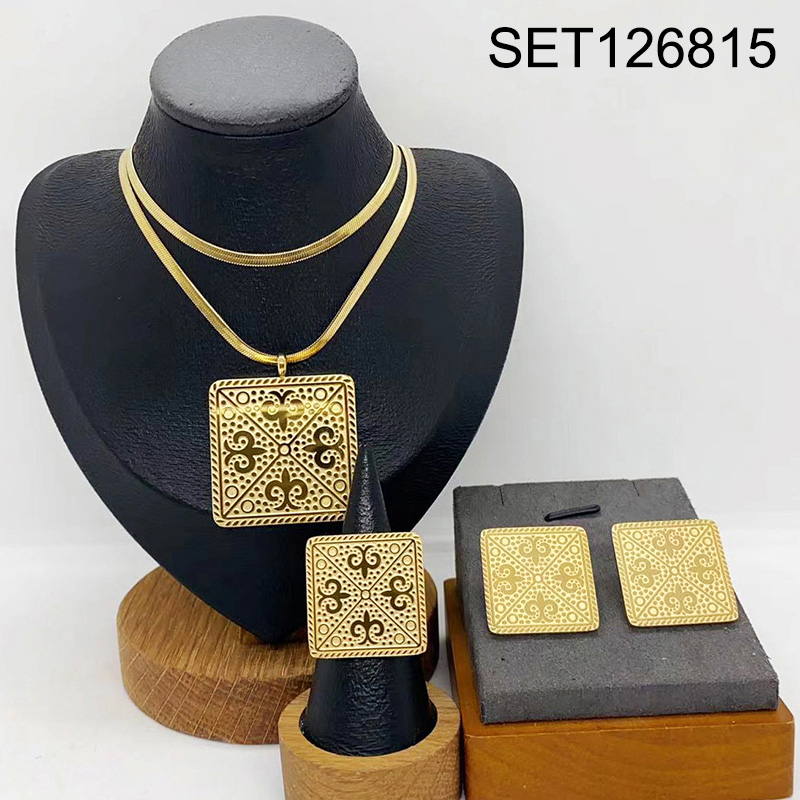 Level B Stainless Steel New Trendy Women Jewelry Two Layers Chain Square Golden 3pcs SET