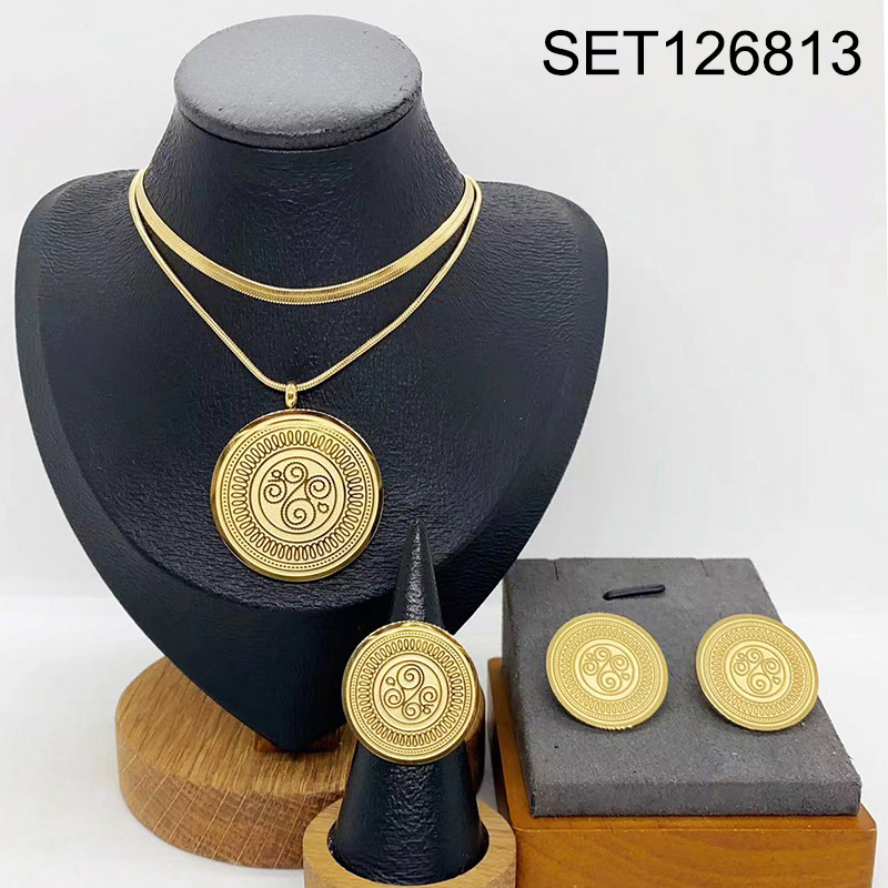 Level B Stainless Steel New Trendy Women Jewelry Two Layers Chain Round Golden 3pcs SET