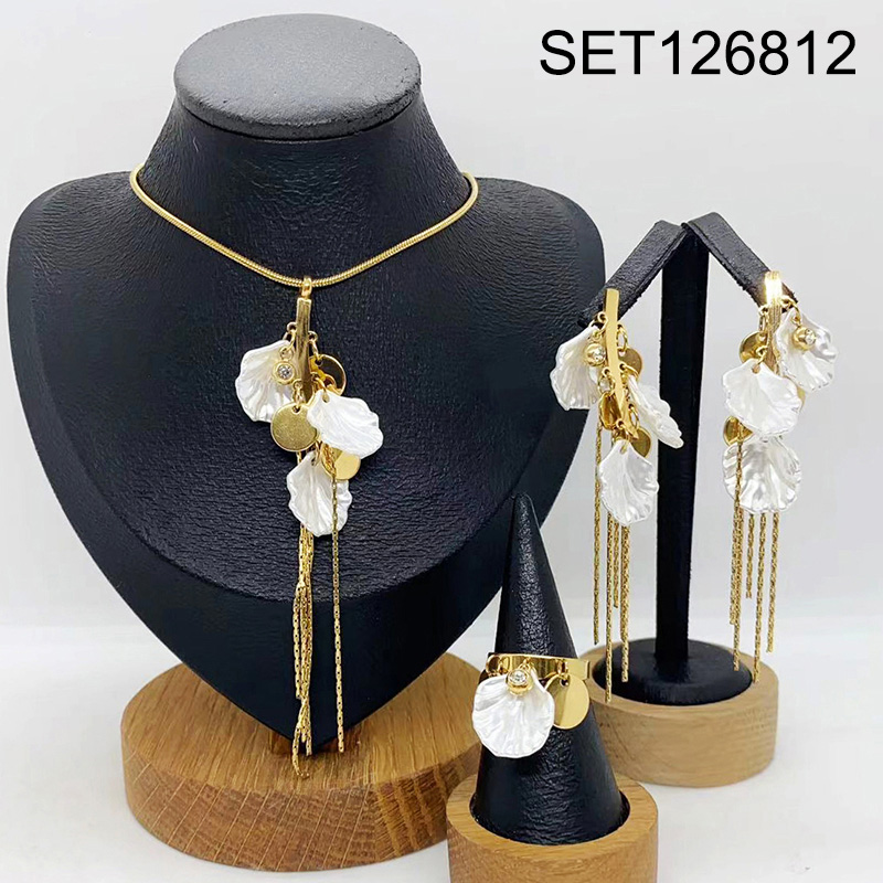 Level B Stainless Steel New Trendy Women Jewelry Tassel Golden 3pcs SET