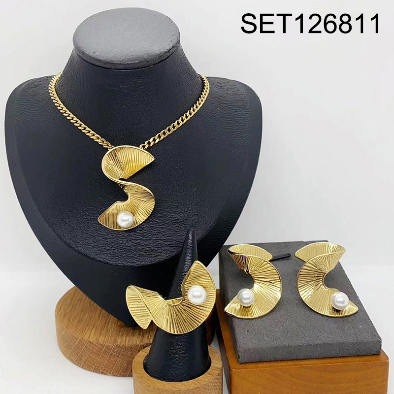 Level B Stainless Steel New Trendy Women Jewelry Golden 3pcs SET
