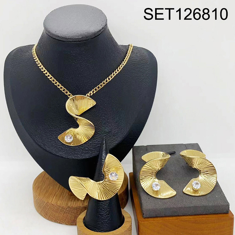 Level B Stainless Steel New Trendy Women Jewelry Golden 3pcs SET