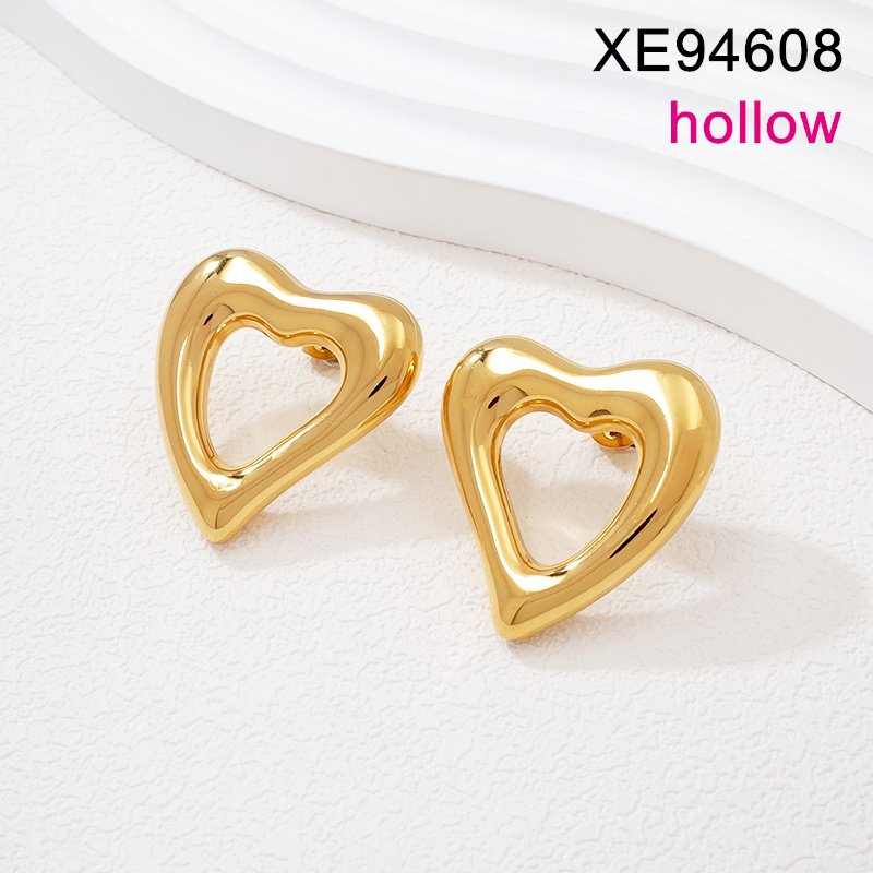 Home > Level B Stainless Steel New Trendy Women Jewelry Heart Golden Valentine's Day Hollow Earrings
