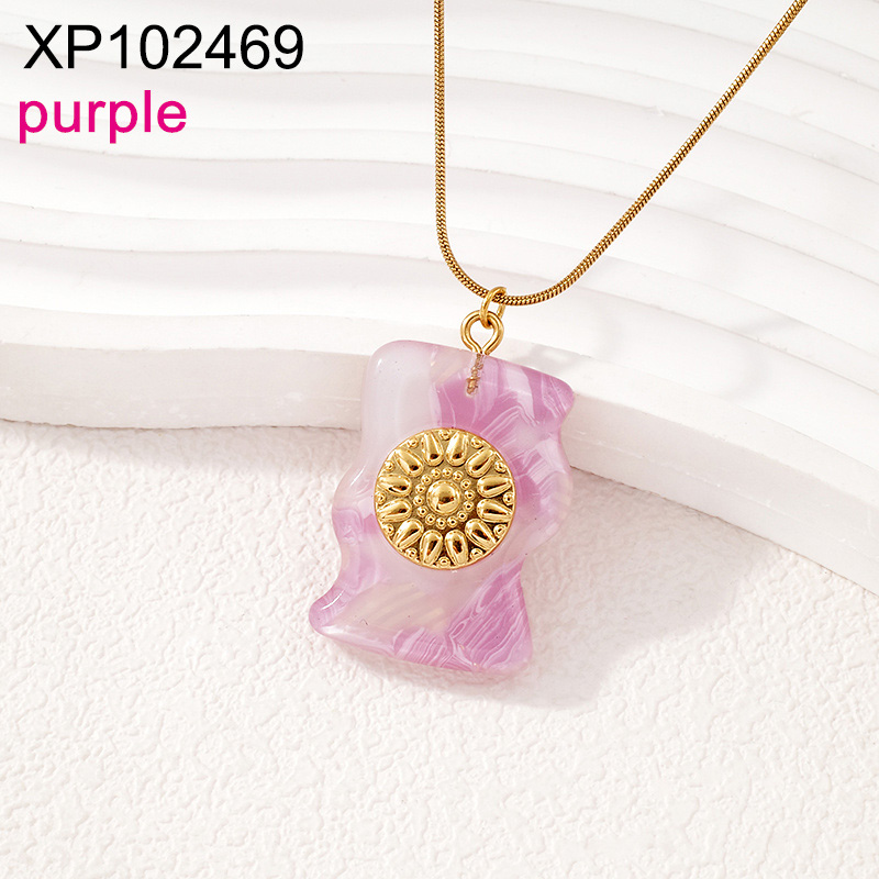 Home > Level B Stainless Steel New Trendy Women Jewelry Resin Purple Irregular Rectangle Golden Pendant