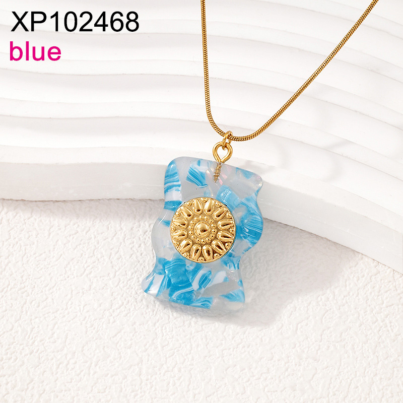 Level B Stainless Steel New Trendy Women Jewelry Resin Blue Irregular Rectangle Golden Pendant