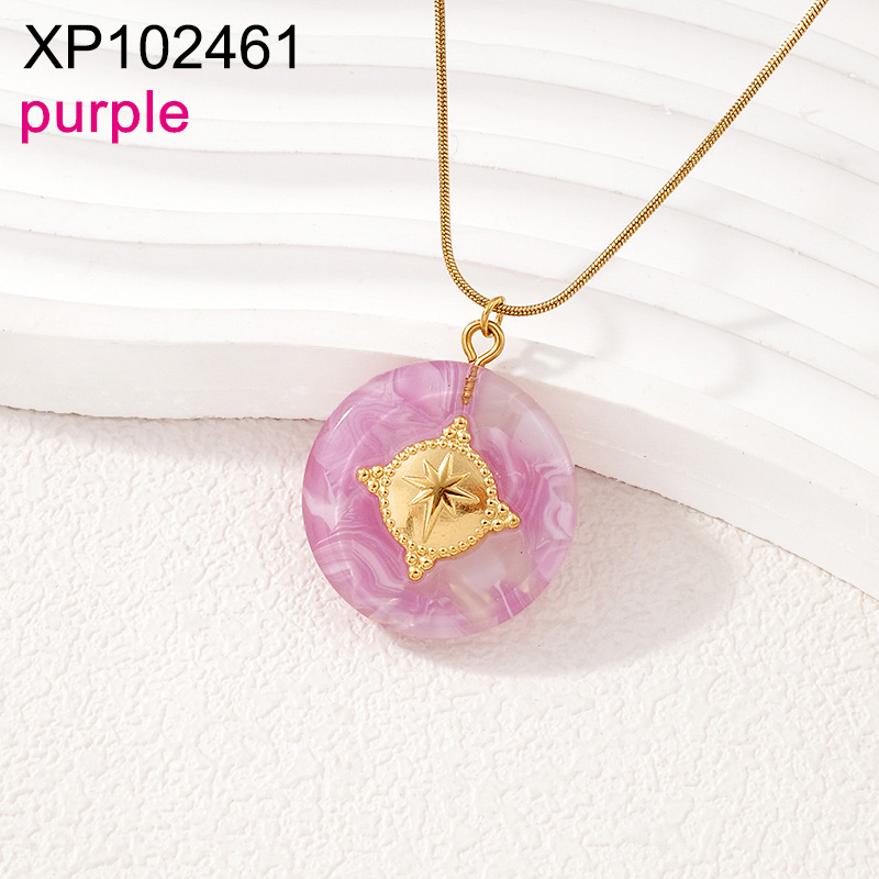 Level B Stainless Steel New Trendy Women Jewelry Resin Purple Round Golden Pendant