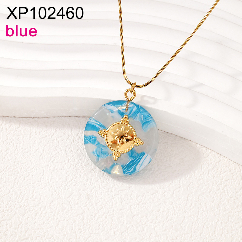 Level B Stainless Steel New Trendy Women Jewelry Resin Blue Round Golden Pendant