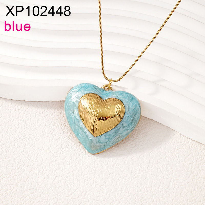 Level B Stainless Steel New Trendy Women Jewelry Drip Oil/Enamel Blue Heart Golden Valentine's Day Pendant