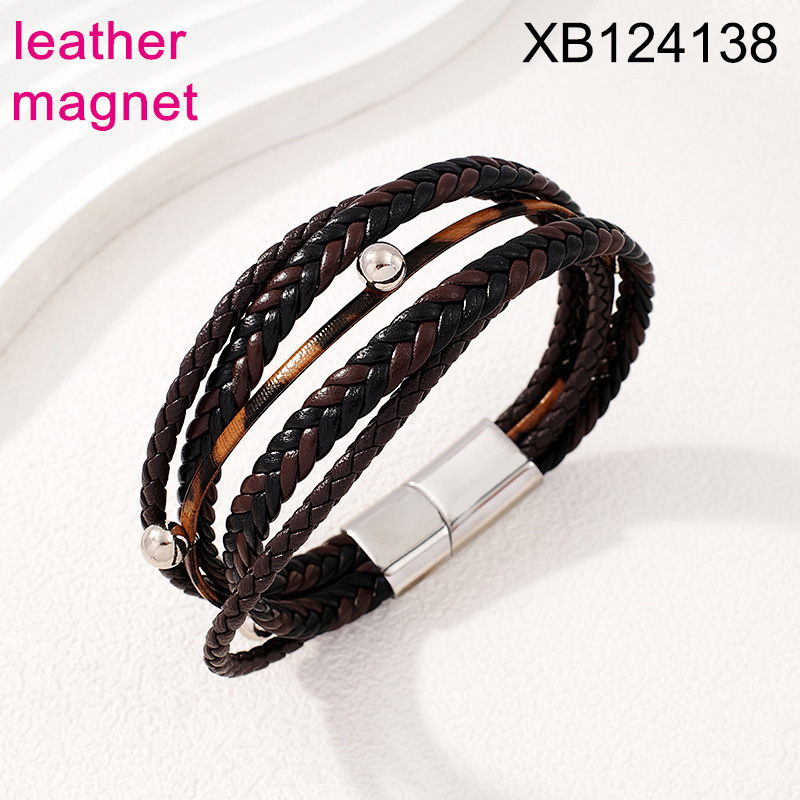 Home > Level B Stainless Steel New Trendy Man Jewelry Five Layers Chain Steel color Magnet buckle Leather Bracelet