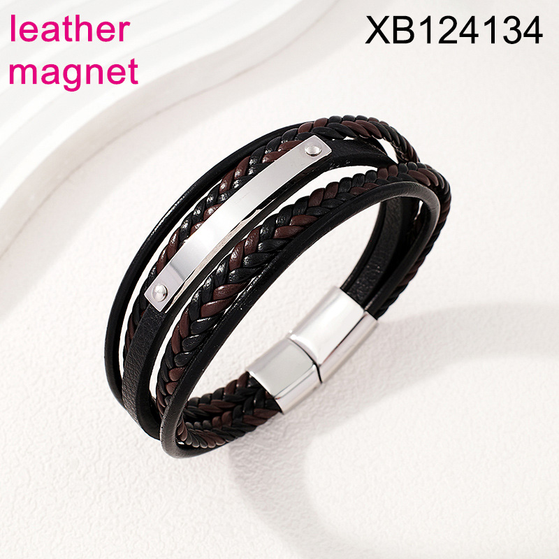 Home > Level B Stainless Steel New Trendy Man Jewelry Five Layers Chain Steel color Magnet buckle Leather Bracelet