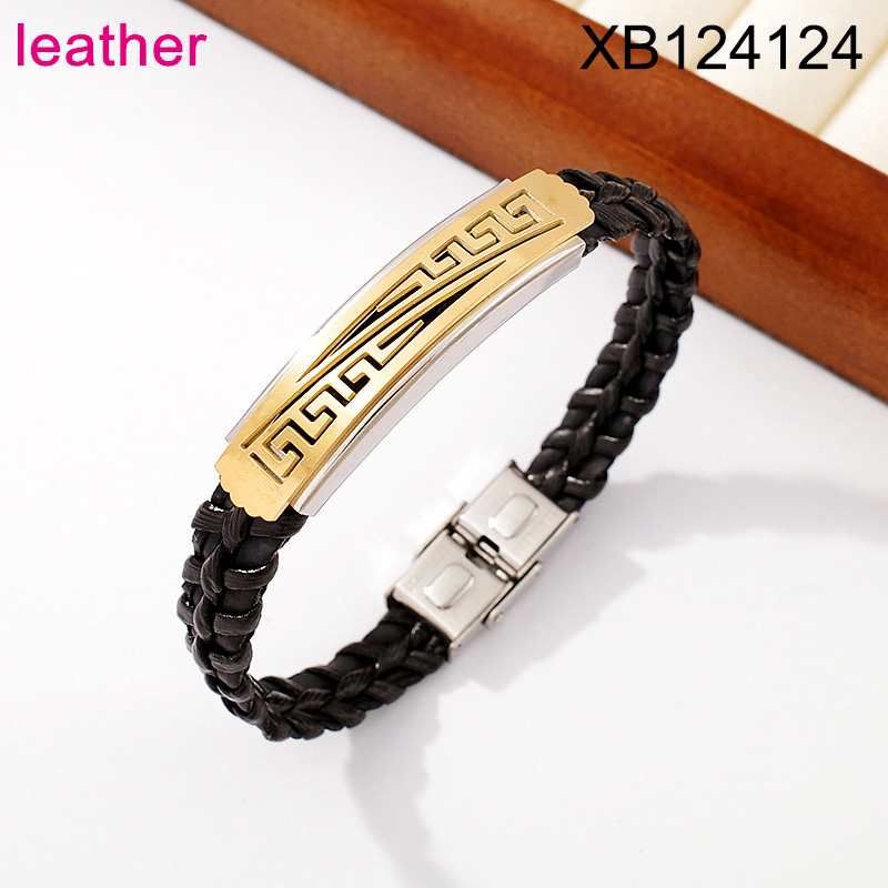 Home > Level B Stainless Steel New Trendy Man Jewelry Great Wall Pattern Two Tone Leather Bracelet