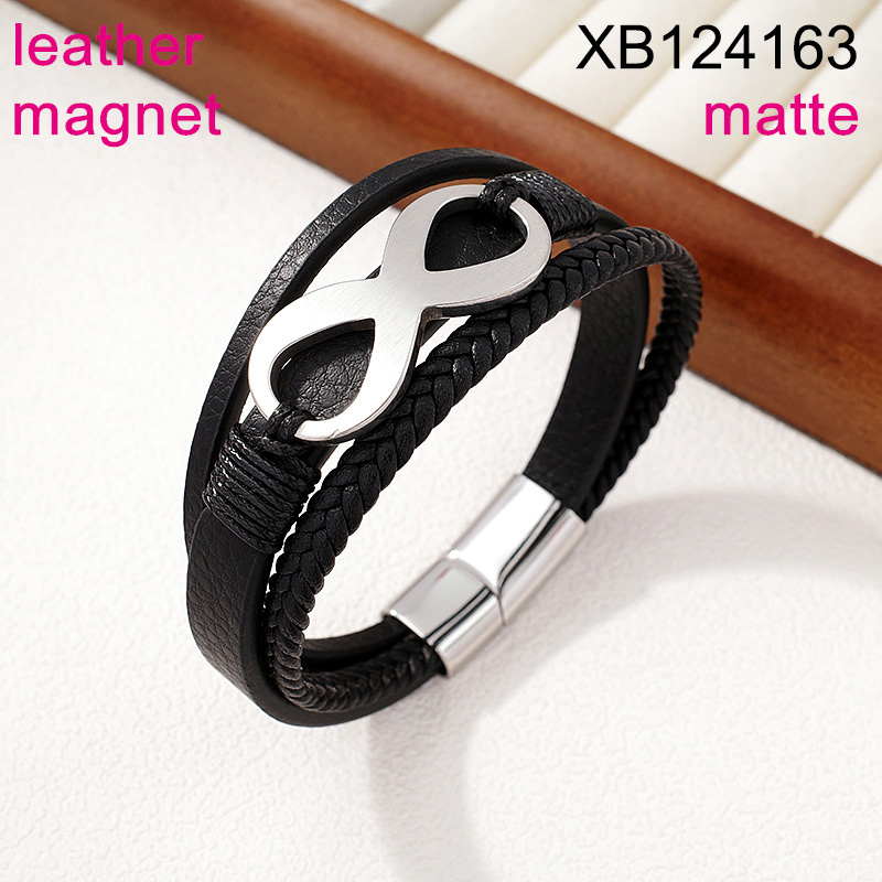 Home > Level B Stainless Steel New Trendy Man Jewelry Three Layer Chain Lnfinity Jewelry/Number Eight Steel color Magnet buckle Leather Bracelet