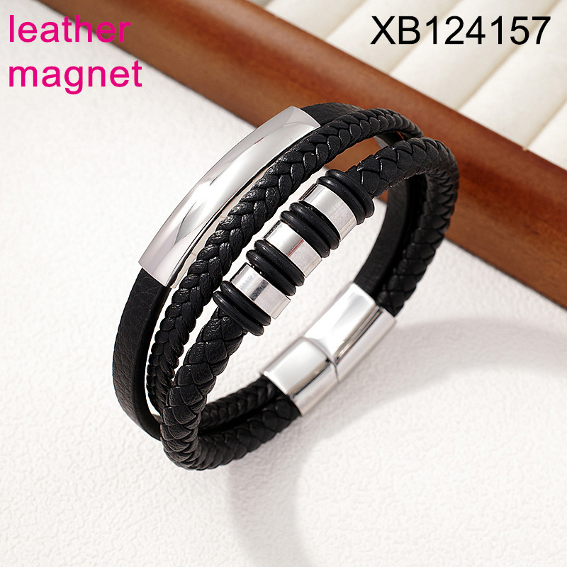 Home > Level B Stainless Steel New Trendy Man Jewelry Three Layer Chain Steel color Magnet buckle Leather Bracelet