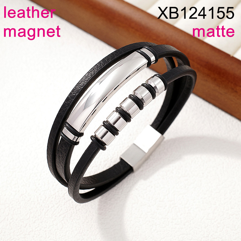 Home > Level B Stainless Steel New Trendy Man Jewelry Three Layer Chain Steel color Magnet buckle Leather Bracelet