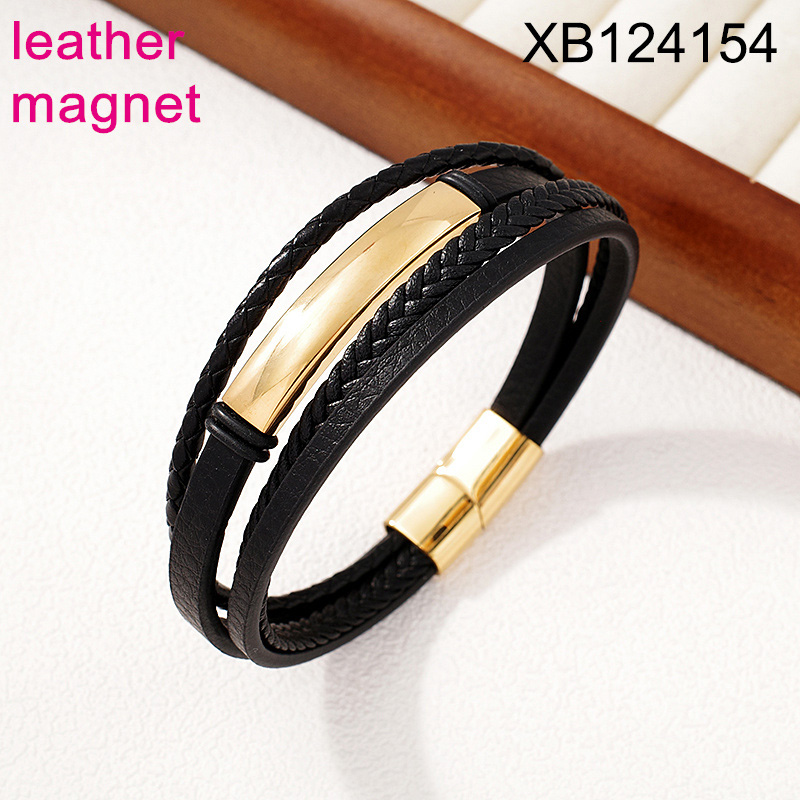 Home > Level B Stainless Steel New Trendy Man Jewelry Four Layer Chain Golden Magnet buckle Leather Bracelet