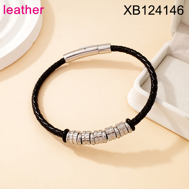 Home > Level B Stainless Steel New Trendy Man Jewelry Steel color Leather Bracelet