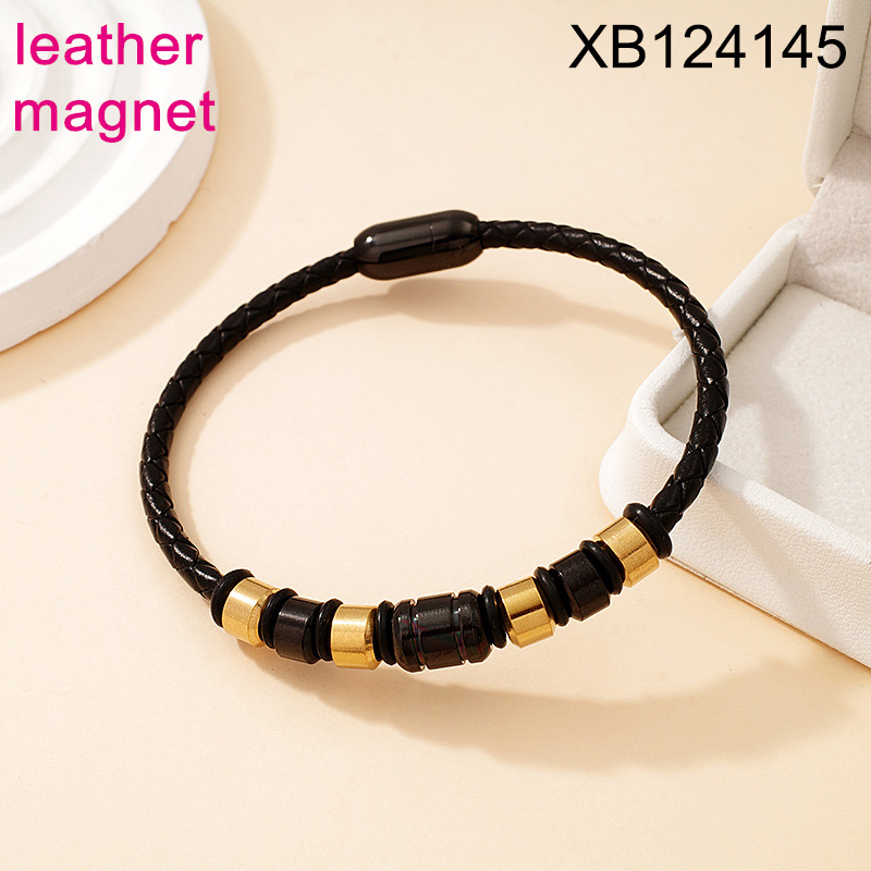 Home > Level B Stainless Steel New Trendy Man Jewelry Two Tone Magnet buckle Leather Bracelet