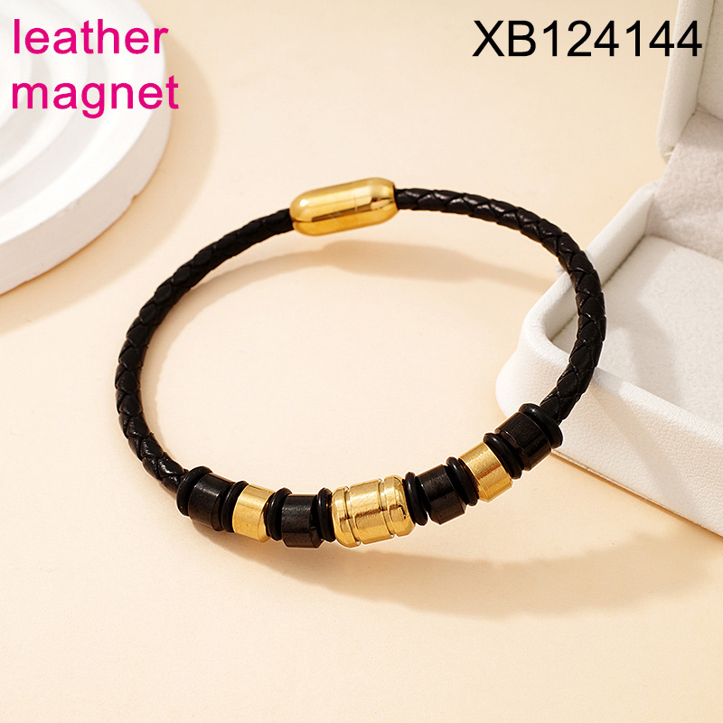 Home > Level B Stainless Steel New Trendy Man Jewelry Two Tone Magnet buckle Leather Bracelet