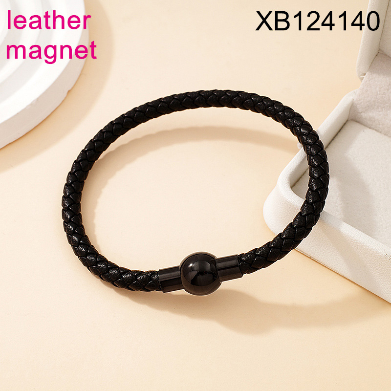 Home > Level B Stainless Steel New Trendy Man Jewelry Plating Black Magnet buckle Leather Bracelet