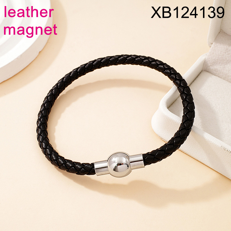 Home > Level B Stainless Steel New Trendy Man Jewelry Steel color Magnet buckle Leather Bracelet