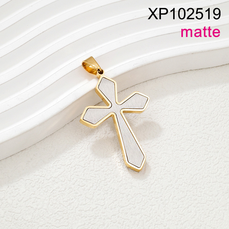 Level B Stainless Steel New Trendy Man Jewelry Cross Two Tone Matte Pendant