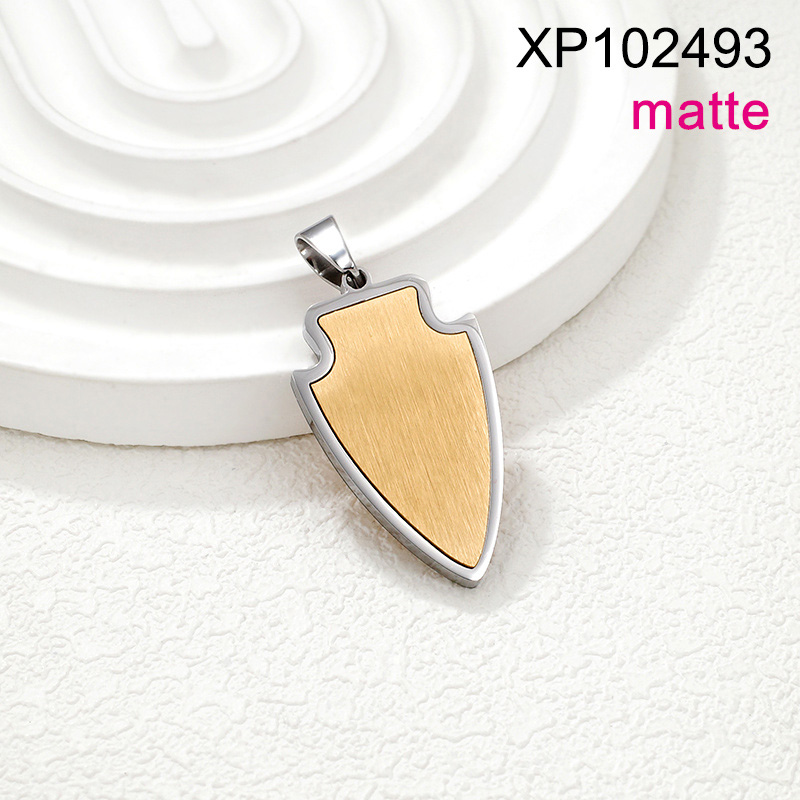 Level B Stainless Steel New Trendy Man Jewelry Triangle Shield Two Tone Matte Pendant