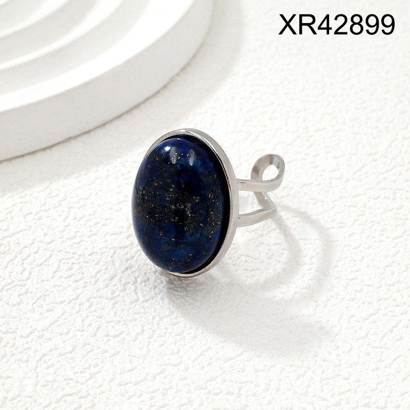 Level B Stainless Steel New Trendy Women Jewelry Oval Natural Stone Steel color Open Rings;Ring size can be adjusted freely