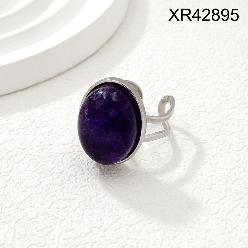 Home > Level B Stainless Steel New Trendy Women Jewelry Oval Natural Stone Steel color Open Rings;Ring size can be adjusted freely