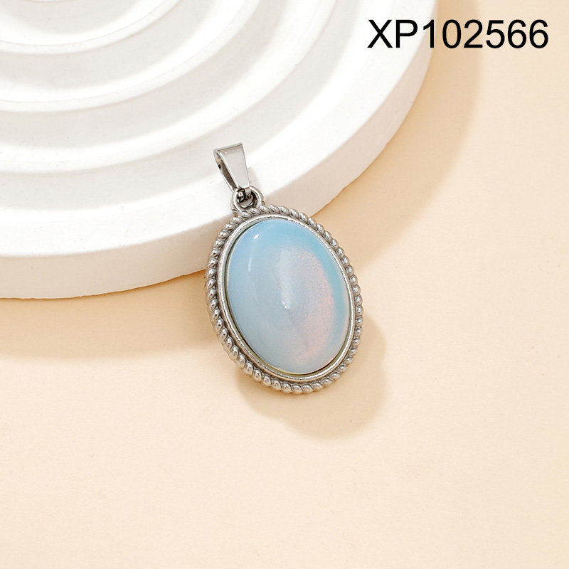Home > Level B Stainless Steel New Trendy Women Jewelry Oval Natural Stone Steel color Pendant