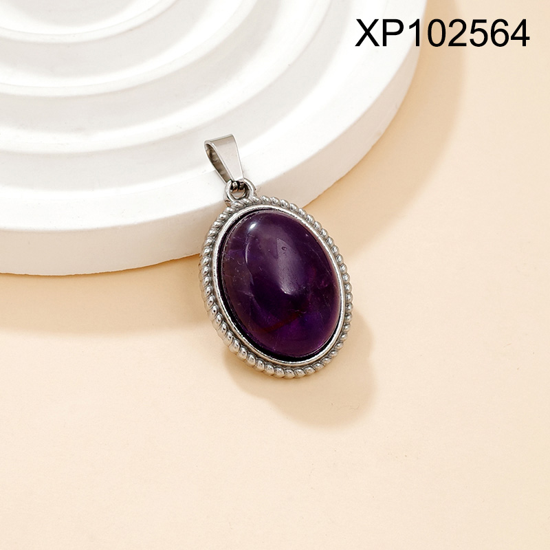 Level B Stainless Steel New Trendy Women Jewelry Oval Natural Stone Steel color Pendant