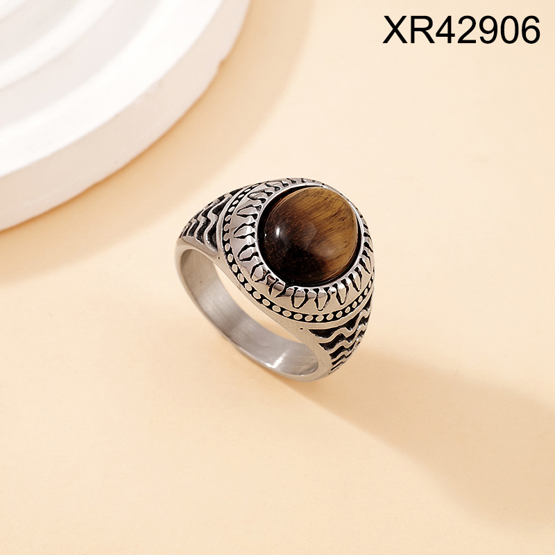 Level B Stainless Steel New Trendy Man Jewelry Punk Rock Vintage Oval Tiger's Eye Steel color Rings