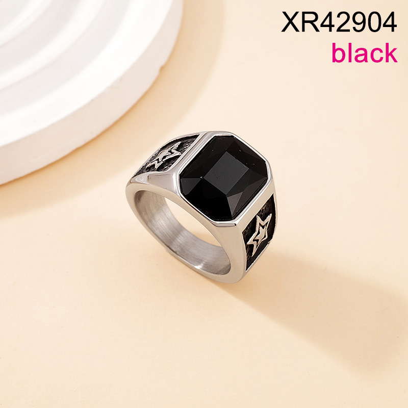 Home > Level B Stainless Steel New Trendy Man Jewelry Punk Rock Vintage Geometry Black Stone Steel color Rings