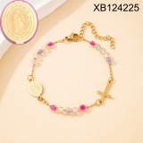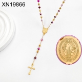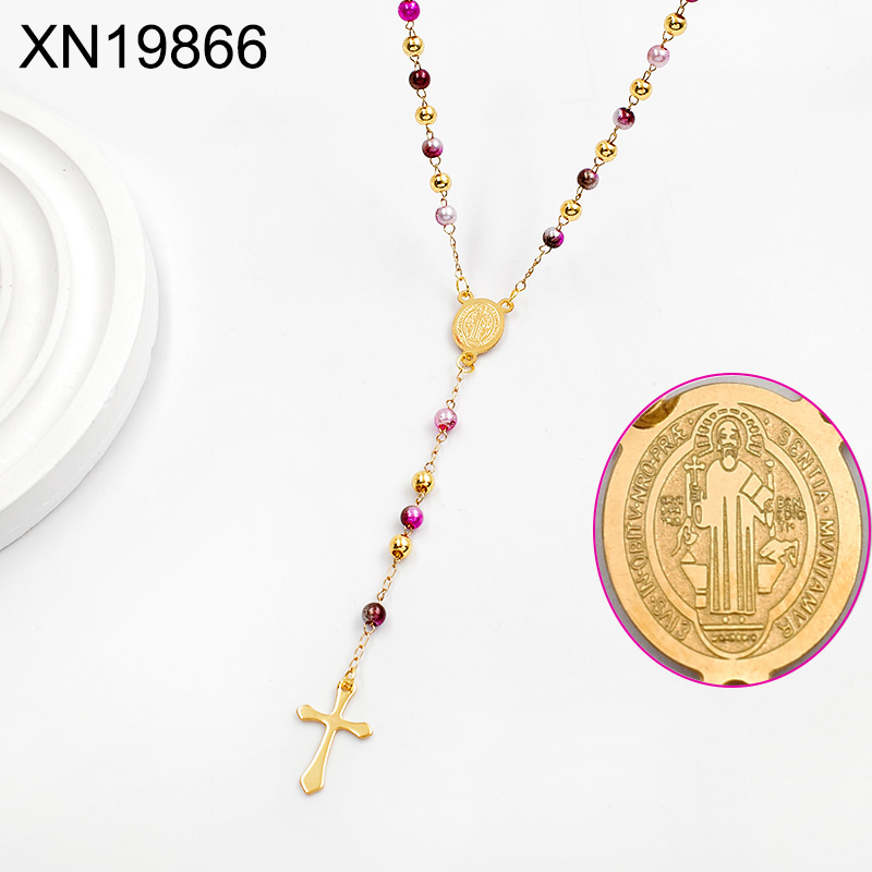 Level B Stainless Steel New Trendy Women Jewelry Bead Chain Religion Cross Golden Necklace
