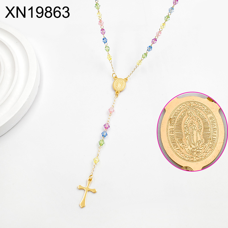 Level B Stainless Steel New Trendy Women Jewelry Bead Chain Religion Cross Golden Necklace