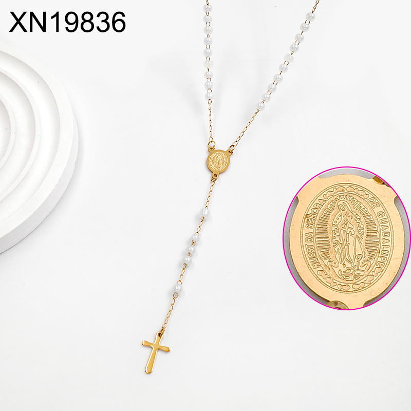 Level B Stainless Steel New Trendy Women Jewelry Pearl Style/Plastic Beads Bead Chain Religion Cross Golden Necklace