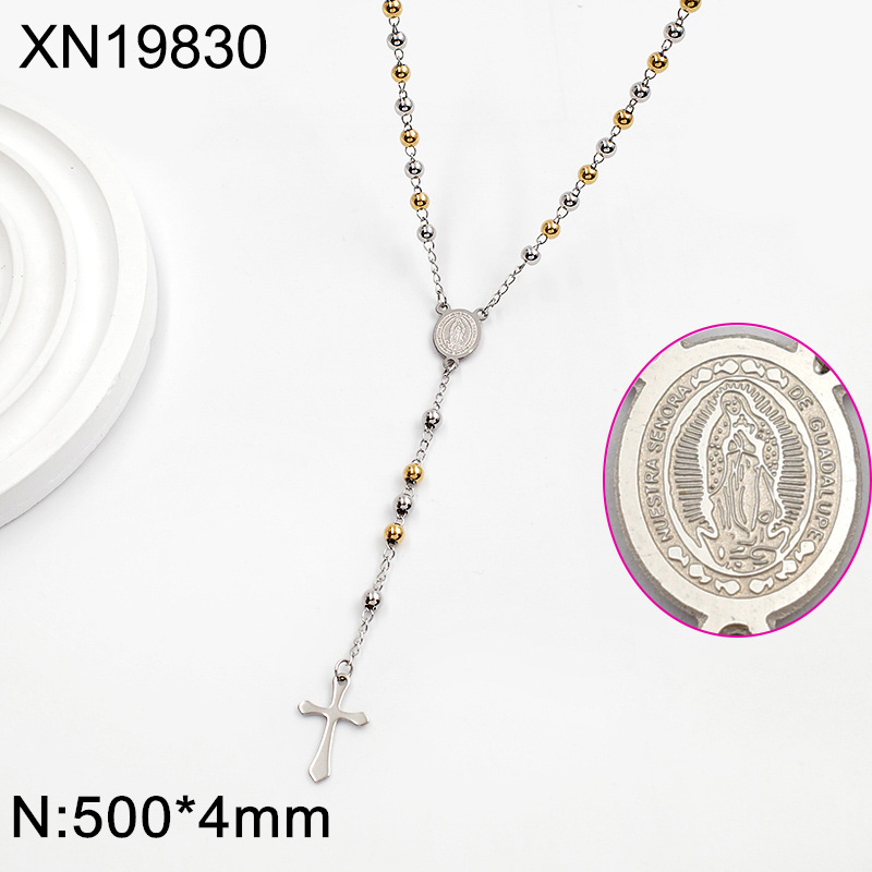 Level B Stainless Steel New Trendy Women Jewelry Bead Chain Religion Cross Two Tone Necklace