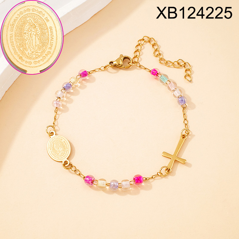 Level B Stainless Steel New Trendy Women Jewelry Bead Chain Religion Cross Golden Bracelet
